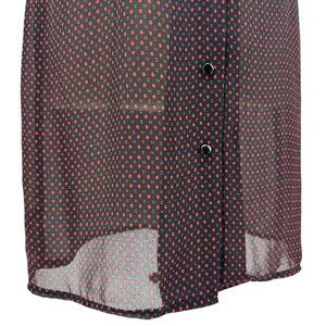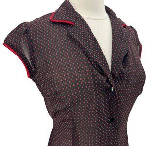 Vintage Jody Kristopher Womens 7/8 Dress Sheer Polka Dot Black Red Button Retro