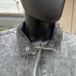 Vintage Joe Borders Squadron Mens XL Jacket Denim Full Zip Distressed Washed