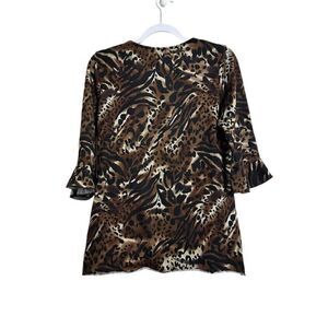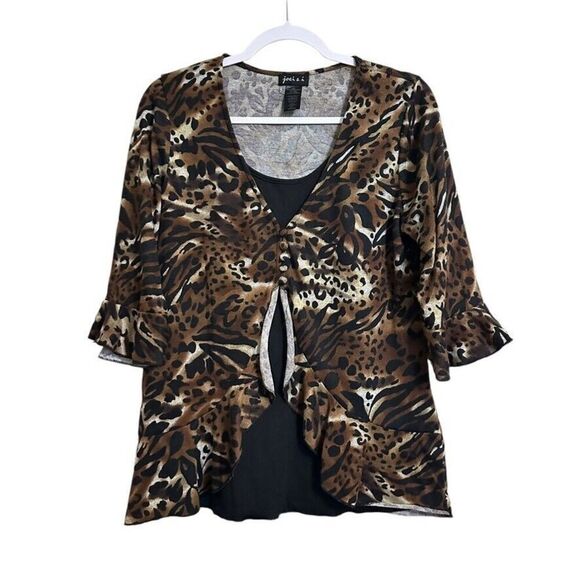 Vintage Joei & I Leopard Print 3/4 Blouse Women's L Ruffle Bell Sleeve Y2K Retro