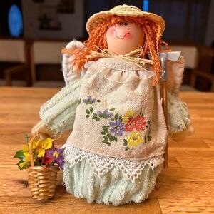 Farmer Doll with a Basket Full of Flowers