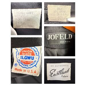 Vintage Jofeld 80s Double Breasted Black Wool & Leather Trench Coat USA ILGWU