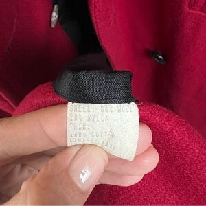 Vintage Jofeld Long Wool Coat Velvet Collar Pockets Red Black Large Old Money
