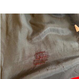 no rips, or holes on the shell- minor to moderate wear to outer fabric; one small surface spot on the front and a few darkened discolored spots throughout