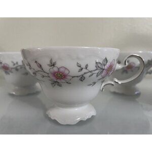 Vintage Johann Haviland Bavaria Germany, Set of 4 Teacups, White w/ Pink Floral