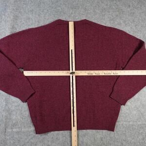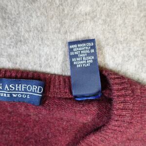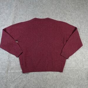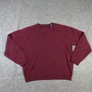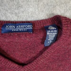 Vintage John Ashford Sweater Mens Large Pure Wool V-Neck Burgundy Knit Pullover