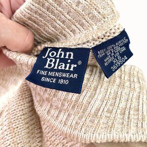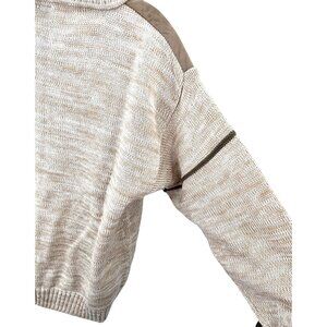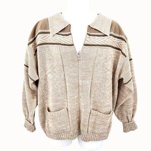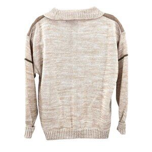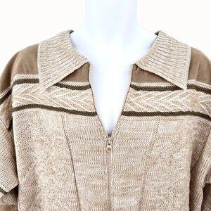 Vintage John Blair Beige Grandpa Zip Sweater w/ Faux Suede Accents & Pockets XLG