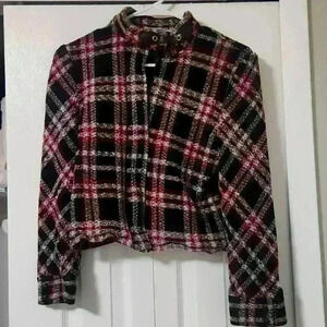 Vintage. John Collection - Red & Brown Plaid Moto Jacket