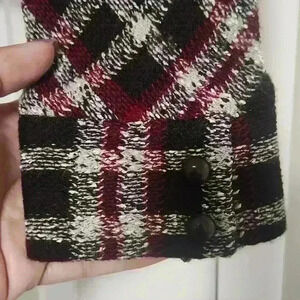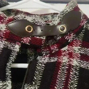 Vintage St John Collection by Marie Gray. Brown and red plaid, leather hardware at neck.