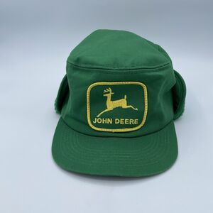 Vintage John Deere Logo Patch Hat Ear Flap 70’s / 80’s Green Farmer Trapper Cap