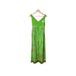 Step into a daydream of vibrant color and vintage charm with this exquisite mod floral maxi dress. The delicate v-neckline and fitted bodice flow into a graceful A-line skirt, creating a silhouette that is both flattering and fun. Circa late 1960s, early 1970's.