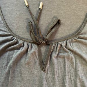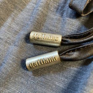 Size Large. No tags (as I carefully remove them) because I find them itchy. :) The front tie has the John Galliano logo on the metal bead. (You can see it in the pictures.) Measurements below.
