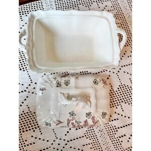 Vintage John Maddock & Son England Royal Vitreous Rectangular Floral Lidded Dish