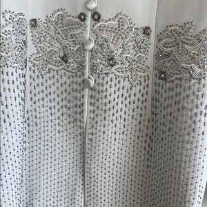 Details: Intricate hand-applied beadwork and sequins, with ornaments that may include leather or suede (as noted on tag).