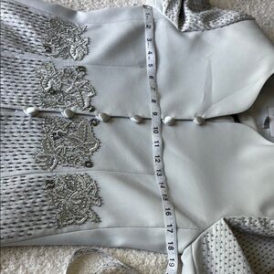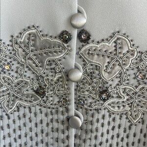 Details: Intricate hand-applied beadwork and sequins, with ornaments that may include leather or suede (as noted on tag).