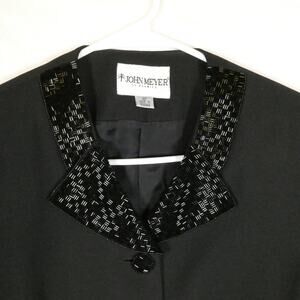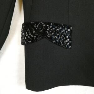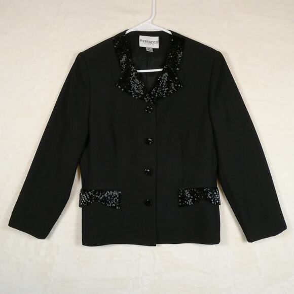 Gorgeous jacket from John Meyer of Norwich from my mom's mid-90s closet. Beaded collar and pockets with large beaded buttons at the sleeve openings. Beautiful black tie razzle dazzle eveningwear! Or killer piece for an eclectic bohemian vintage wardrobe. Women's size 10P or 10 petite.