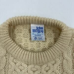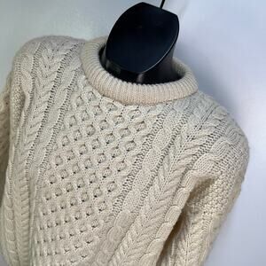 Vintage John Molloy Ivory Cable Knit Pullover Crewneck Donegal Wool Fisherman