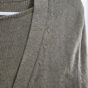 Embrace the ocean breeze with this vintage green open knit cardigan set by John Patrick for geoda design. The oversized look and beachy vibes make it the perfect addition to any casual outfit. Made from high-quality knit material, this cardigan set is both comfortable and stylish.