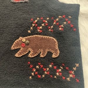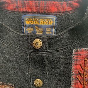 Woolrich wool vest with bear, leaves, cabin and buffalo plaid. Button down.