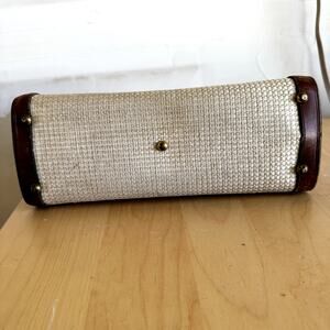 Vintage John Romain The Vouge Handbag 70s Sturdy Leather Tweed Brown Cream