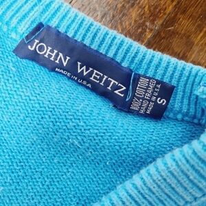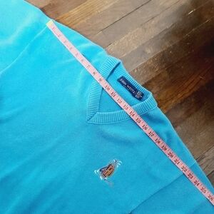 Vintage John Weitz Blue V-neck Golf Embroidery Pullover Cotton Sweater Small