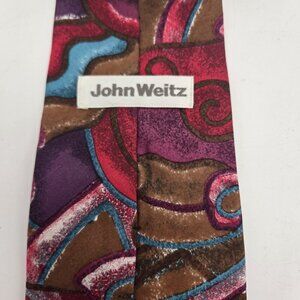 Vintage John Weitz Mens Tie Abstract Picasso 100% Silk Red Blue Purple USA 4x61