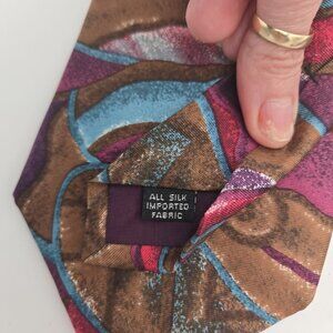 Elevate your wardrobe with the Vintage John Weitz Men's Tie, featuring an eye-catching Abstract Picasso pattern. This luxurious accessory is crafted from 100% silk, ensuring both comfort and durability. The vibrant multicolor palette, boasting red, blue, and purple hues, makes a bold statement suitable for a variety of occasions.