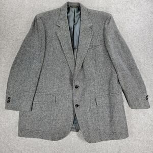 Vintage John Weitz Herringbone Sport Jacket Men’s XL, Gray Tweed Wool, 2 Button, Stylish, Comfortable, Perfect for Casual & Semi-Formal Wear