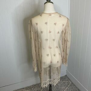 Vintage Johnnie Fedora Women Small Sheer Lace Detail Intimates Cover up Cardigan