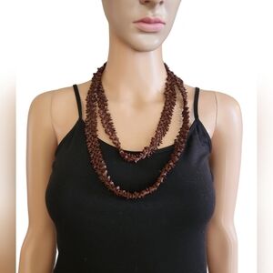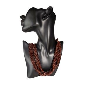 This necklace is approximately 48" in length and made of what appears to be appleseeds, preserved and strung together in a star-like pattern. A few of the seeds show a chip or two but there is no loose strings or cords, still very good shape
