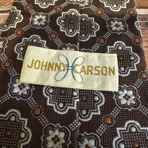 Vintage Johnny Carson Tie Brown Geometric Medallion Pattern Poly Men's Classic