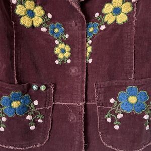 Vintage Johnny Was Joystick Floral Embroidered Burgundy Corduroy Jacket Sz Large