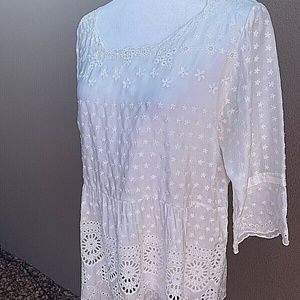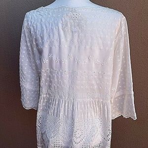 Vintage Johnny Was White Floral Peplum Embroidered Lace Blouse Top Tunic Size: S