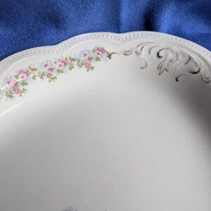 Classically gorgeous platter with beautiful pink flowers around the rim and at center.