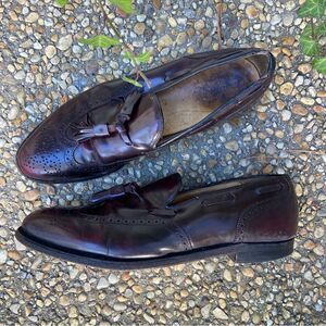 Vintage Johnston & Murphy Heritage burgundy tassel punched wingtip loafers 10 B