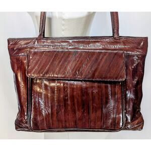 Vintage Joli Genuine Eel Skin Brown Shoulder Tote Bag