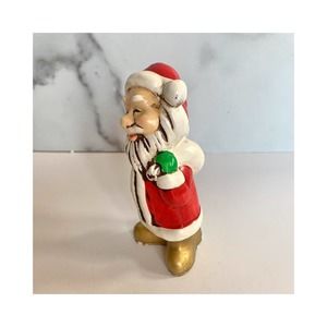 Vintage Jolly Santa Figurine Christmas Ceramic Hand Painted MCM Decor
