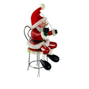 Wire stool slightly bent; minor paint wear on Santa's suit. Top to bottom = 6 inches.