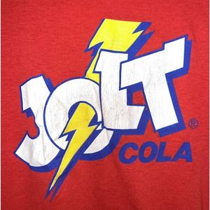 Vintage Jolt Cola Lightning Bolt Red T-Shirt Size Medium Made in the USA Single Stitch.