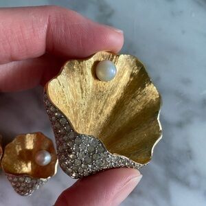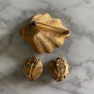Vintage Jomaz Gold Shell with Pearl Brooch Pin and Clip Earring Set