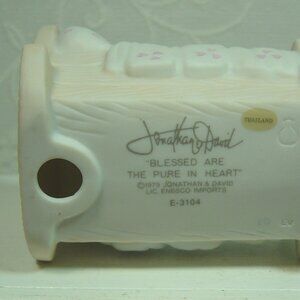 This listing is for a vintage Jonathan & David figurine--"Blessed are the Pure in Heart"--baby or child in cradle--1979. It measures approx. 3 1/4" wide. It is in good condition. No box.
