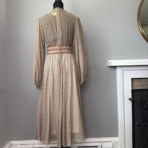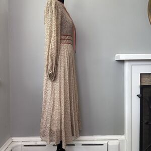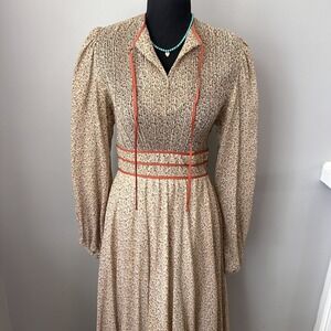 Vintage Jonathan Logan Dress Womens 8 Tan Red Floral Prairie Maxi Long Sleeve USA 70s