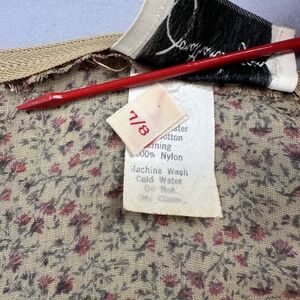 Condition: Good used vintage condition – some flaws present including a small stain and a fabric snag/tear, alteration to one sleeve, all shown in close-up photos