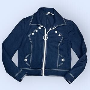 Vintage Jonathan Logan Navy White Mod Zip Front Short Jacket Fits 4-6 or S