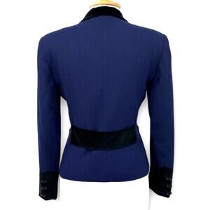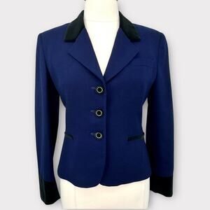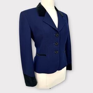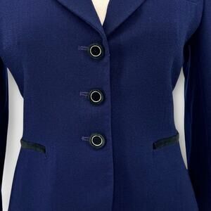 Vintage Jones NY Womens Sz S Indigo Navy Wool Blazer Equestrian Velvet 90s Prep