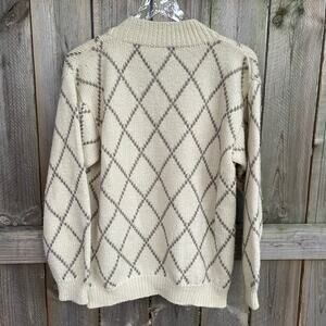 Vintage Jones New York 100% Pure Wool Hand Knit Sweater Floral Cream Blue Medium