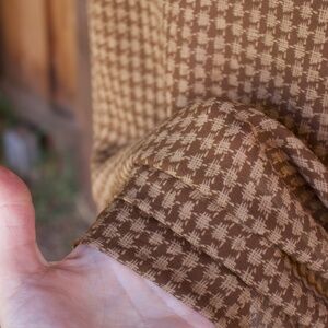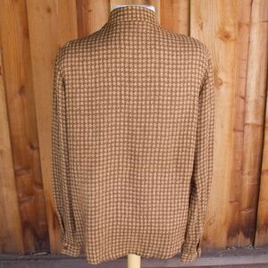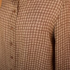 Purchased with the other vintage Jones New York blouse, although the label for material/size has been removed. I would say the size is same as other, 4/6. Gorgeous abstract, almost houndstooth, allover printed long sleeve blouse. Perfect condition, no flaws.