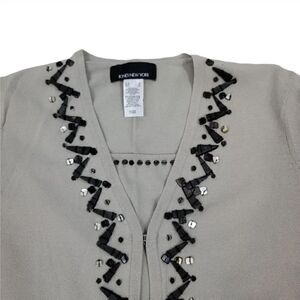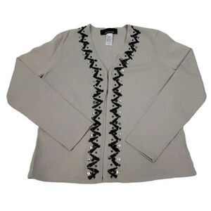 Vintage Jones New York 2 PC Beaded Sweater Cardigan Twinset in Gray Size Small