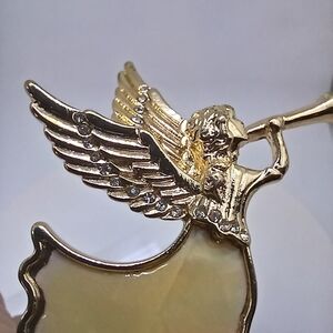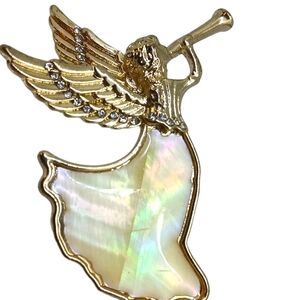 Vintage Jones New York Angel Trumpet Brooch, Gold Tone, Mother of Pearl