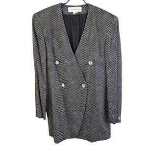 Vintage Jones New York Black Double Breasted Collarless Office Blazer Jacket 6