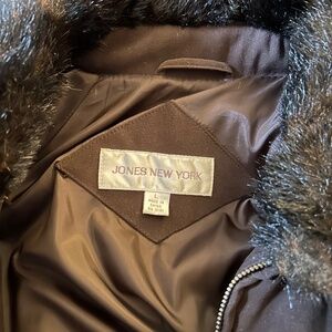 deep brown faux fur zip up with adjustable cinched waist in excellent condition.